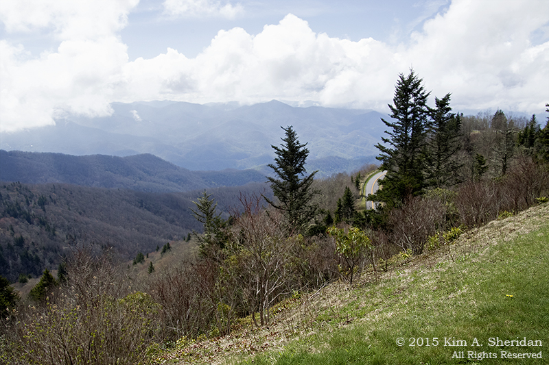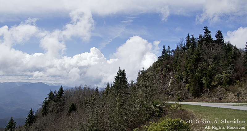 The clouds on our entire trip tended towards the dramatic – when we could see them at all. This was one of the better days for cloud formations. Because he expressed an interest, I bought Don a book on weather in the Asheville Visitor’s Center. I thought maybe he’d like to learn the names of the clouds. Nope. To this day he still calls cumulus formations “fluffy white clouds.” There’s no educating some people.