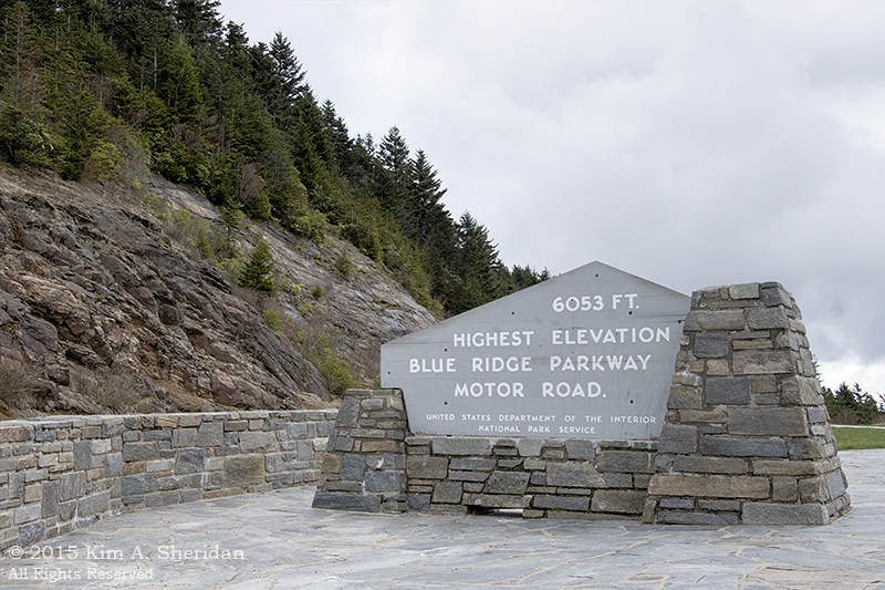 The highest point on the Blue Ridge Parkway is the Richland Balsam Overlook at 6053’, Milepost 431.