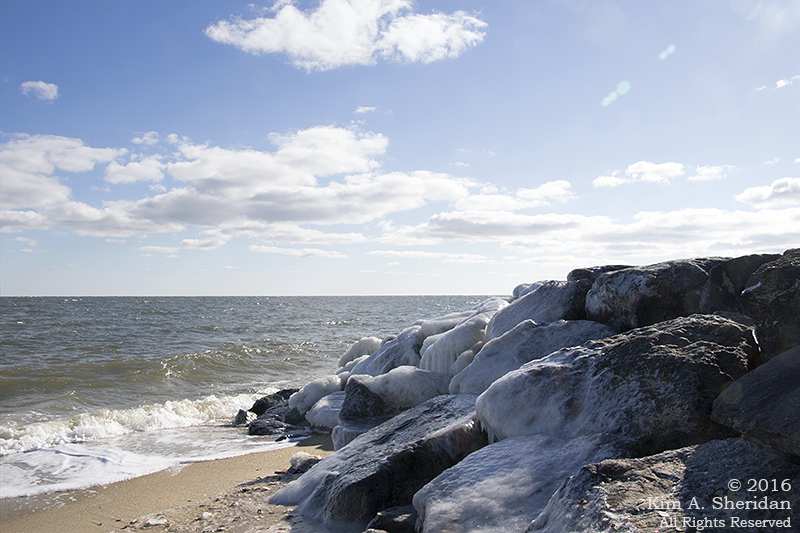 I was more intrigued by the ice coating objects along the shoreline. Not sure what these are. Can you guess which way the prevailing wind blows?