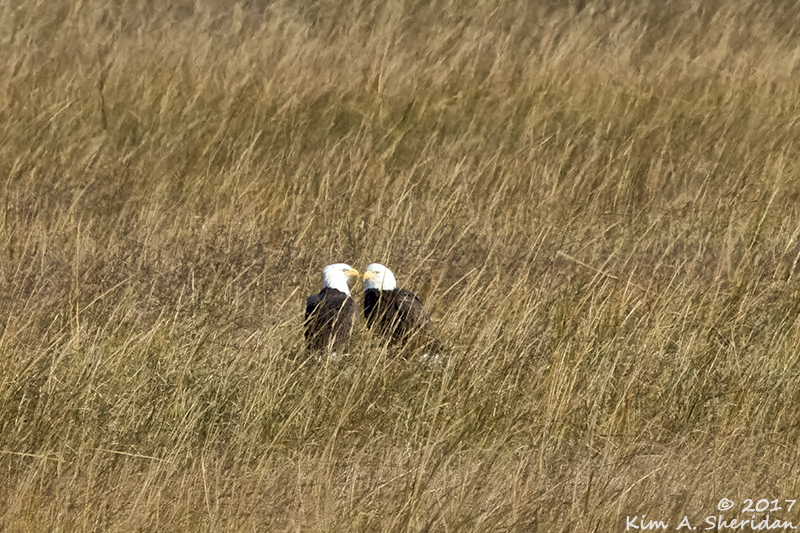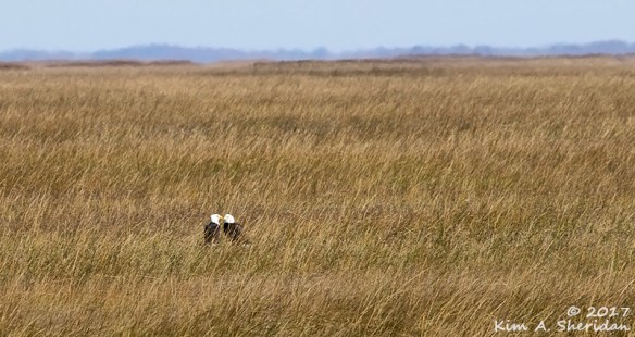 The Wild Turkey was Ben Franklin’s choice for the nation’s emblem. The Turkey lost out to the Bald Eagle. Maybe it was fitting that the first “Wow!” moment of our day was the sight of not one, but two Bald Eagles way out in the marsh grasses, nose-to-nose.