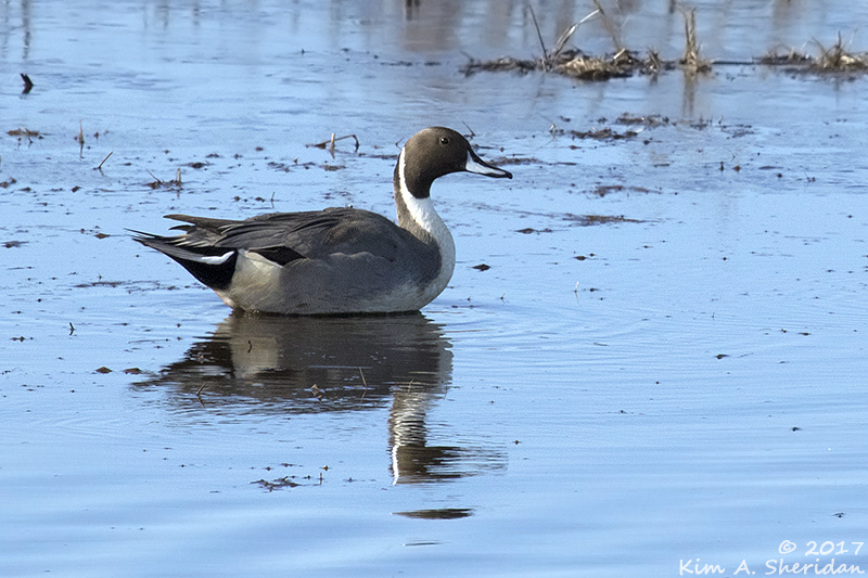 I was fixated on Pintails all weekend. Wood ducks and Harlequins are so colorful as to be almost gaudy, Northern Shovelers have those big, goofy bills, Green-winged Teal and Ruddy Ducks are just cute. Northern Pintail drakes (males) are refined, classic, sophisticated. They are Dapper Ducks.