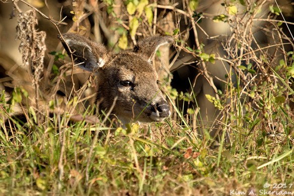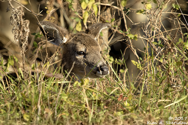 Robb spotted this small white-tailed deer bedded down at the wild edge between woods and meadow.