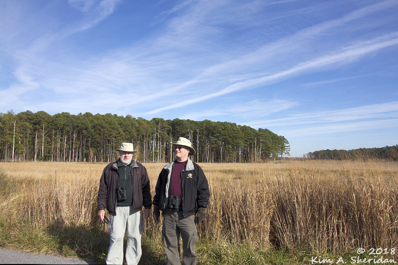The opportunity to take a walk presented itself early on, and we were quick to take advantage of it. Robb and Don marveled at the strange loblolly pines in the mixed oak and pine forest on the Marsh Edge Trail.
