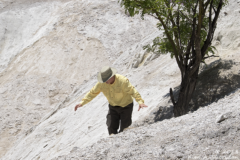 After much prodding, the team buckled down to work, examining the chalky white rock surface, and collecting samples.