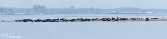 SIR DAVID: Seals are big everywhere they live, Gary. They can weigh up to 350 pounds, and average 5 ½ to 6 feet long. But, yes, small populations of Harbor Seals, as well as Gray, Harp and Hooded Seals, spend the winter months in the waters of New Jersey. The Great Bay is the largest seal haul-out site on the Atlantic coast south of New York. Sandy Hook comes in second, and seals are also seen at Barnegat Light. While seals of the four species number in the hundreds in New Jersey, the worldwide population of Harbor Seals alone is estimated to be between 350,000 and 500,000.