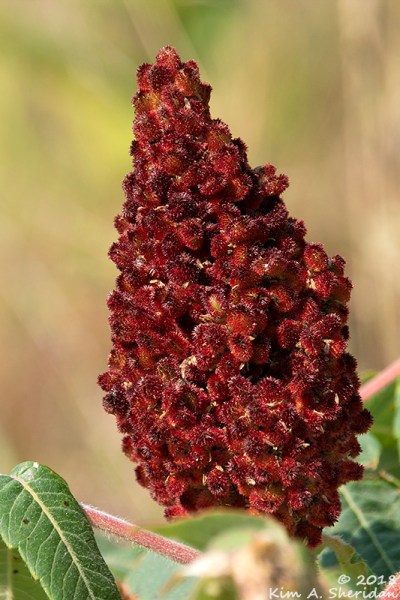 The deep red prickles of this Staghorn Sumac seed head caught my eye. Sumacs are small trees, but in this meadow, many are not much bigger than shrubs. They thrive in the sandy soil where other plants might not.