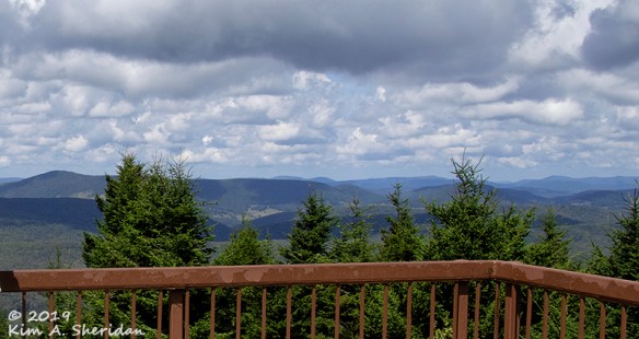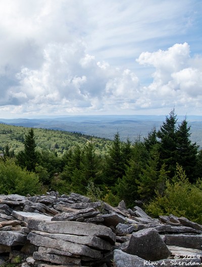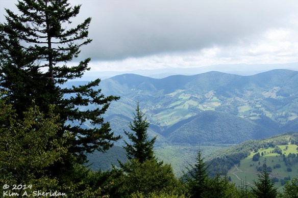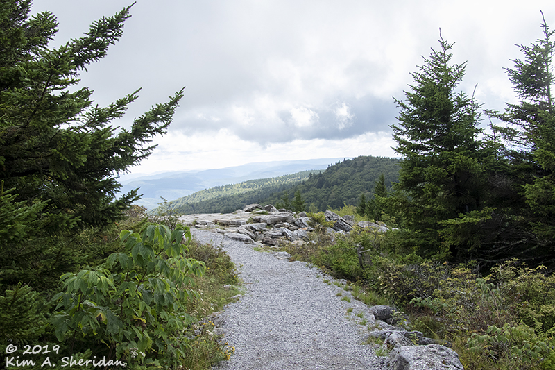 And we walked ALL the way to the top… No! There’s a nice cushy road that leads to a parking lot at the summit. Atop the mountain, the half-mile Whispering Spruce Trail loops out to the southern tip of the ridge and back, passing several overlooks along the way.