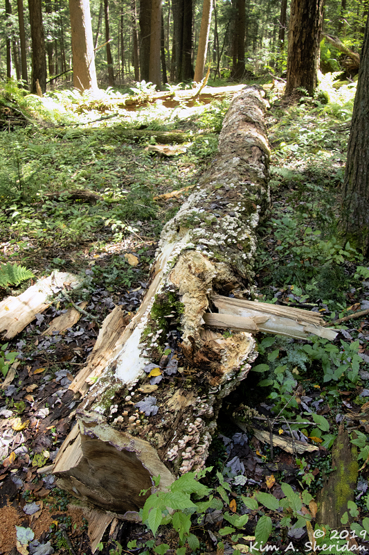 The baptismal font. This holy Cathedral is shady, cool, and humid; ideal refuge for climax species such as hemlocks. Yet this is an inclusive church; many other species of trees are welcome here, as well as wildflowers, ferns, and club mosses.