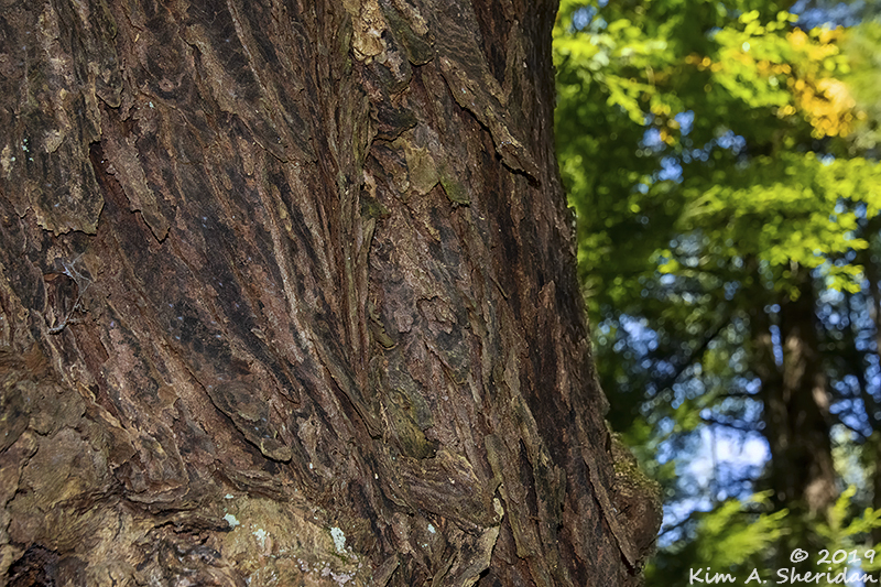 The altar of Tsuga canadensis, the Eastern Hemlock, is clothed in rich brown, deeply fissured bark.
