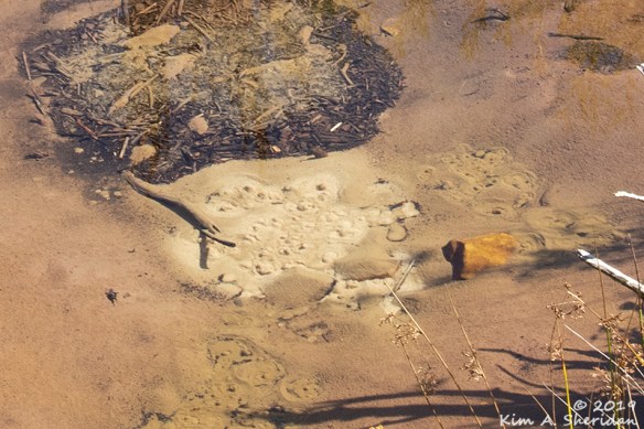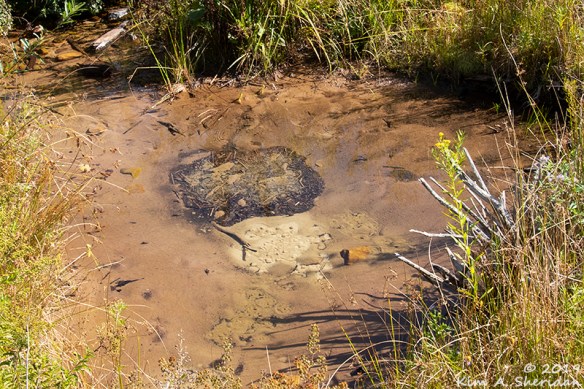 A lot of water ran beneath all the grasses, shrubs and wildflowers, though it was often hard to see. We soon came upon this strange sight. Surprise! What’s going on here?