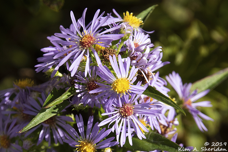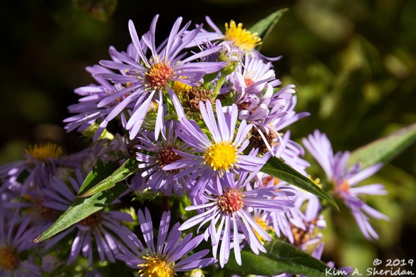 Nearby I spied a bumblebee at work on an aster, yellow pollen sac full and bulging at his hind end. Land of milk and honey, indeed.