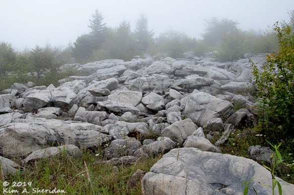 Saving my energy for Bear Rocks, I busied myself with photography, and a few attempts to video the wispy tendrils of mist wafting across the landscape. It really was picturesque, and I was absorbed by the wildflowers amidst the rock piles.