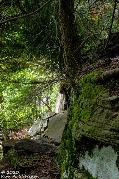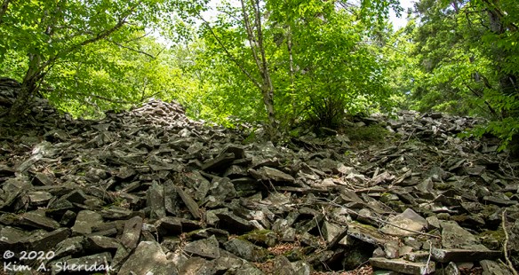 “Above the quarry is an extensive talus slope of broken bluestone slabs, left when the quarries of the Catskills were abandoned.