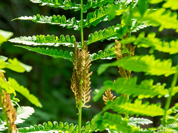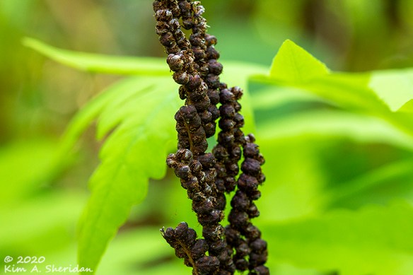 The sporangia wither quickly after releasing their spores, leaving a gap in the fertile frond. It’s easy to see where the name “Interrupted Fern” comes from!