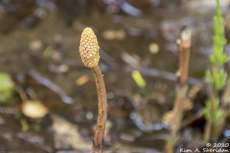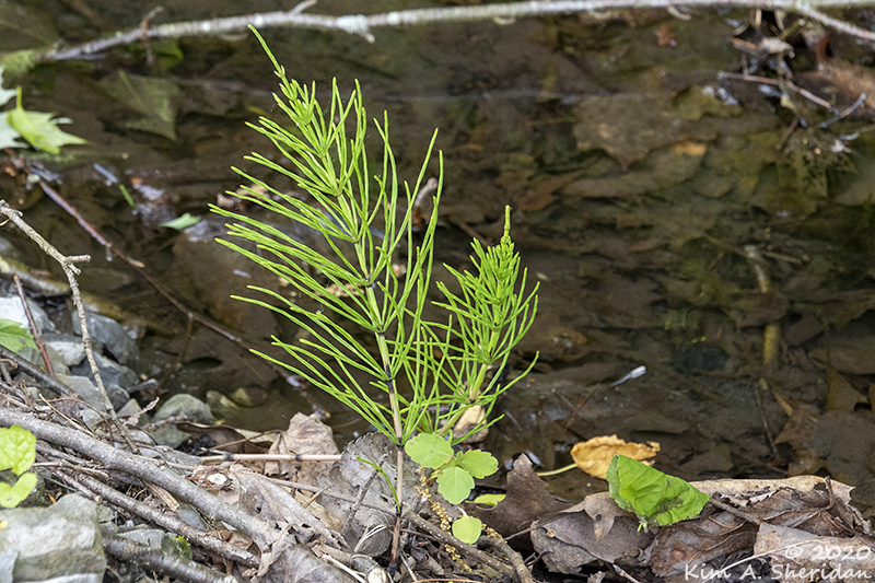 Along a creek in a rocky gorge, we come to yet another plant that looks nothing like a fern. This is Field Horsetail. The bristly, whorled branches look like a horse’s tail, yes?