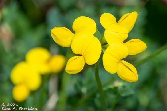Meadows in July mean hot and sunny. They also mean wildflowers to photograph! I knew I’d seen this flower before, but couldn’t remember its name. Already I was missing Robb’s plant knowledge; it wouldn’t be the last time on this trip. When I looked it up at home later, I remembered: Birdsfoot Trefoil, Lotus corniculatus. Native to Eurasia and now common across the US.