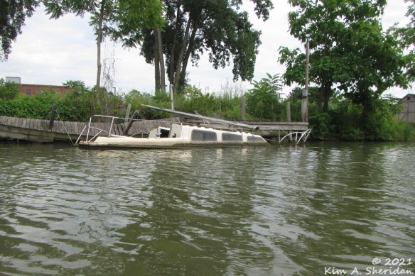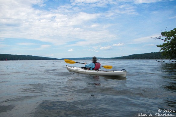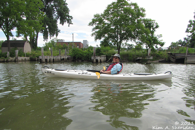 In the following days, I got up close and personal with Cayuga Lake in much more intimate ways – swimming and, at last, kayaking. On Tuesday Ron, Becky, Carol and I took to the water for a kayak expedition. Our water trail started on Cayuga Inlet, which despite its name is a creek. It flows into Cayuga Lake at the southern end.