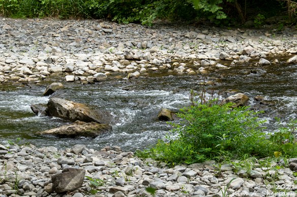 A short walk from the parking area brought us to the banks of a creek. Fall Creek, to be exact, the same creek where we’d paddled, and admired Ithaca Falls. This time we were a bit upstream from the Fall Creek Gorge.