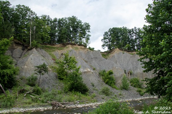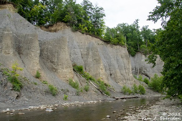 The Cliffs of Varna. I’d seen a lot of cliff faces in my travels through the gorges of Ithaca, but these were quite different. Try though I might, I couldn’t find out what rock the cliffs are made of. Clearly there was a lot of erosion going on. One would think rock climbers would be all over this, but Ron said that the rock in the Ithaca area is too soft for that.