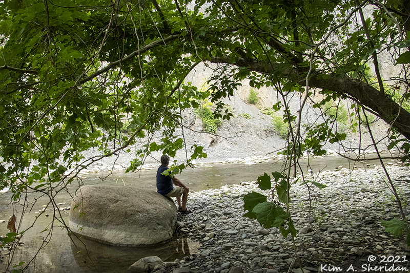 By the time we had followed the path around this bend, we’d descended back to creek level. As is my wont, I made a beeline for the water. No shortage of rocks here.
