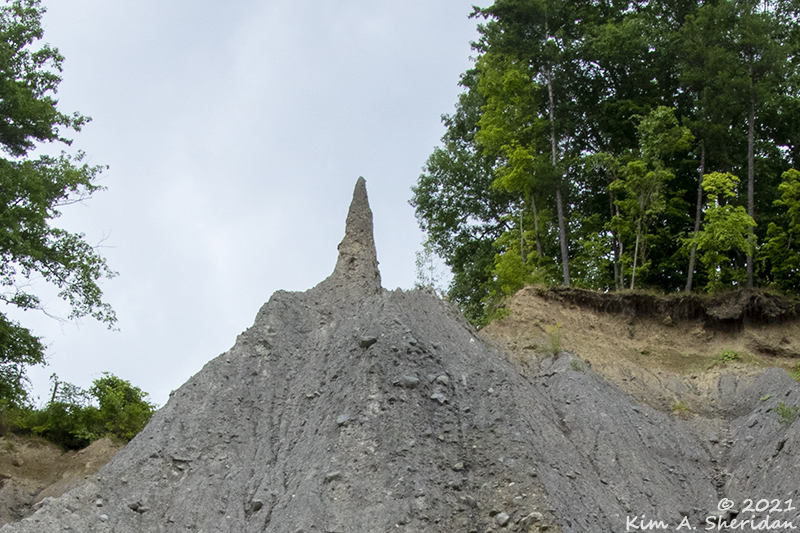 Looking at the wavy bluffs, I was reminded of formations I’d seen out West. A single sentinel atop the cliffs reinforced that impression. Like a miniature version of the tent rocks at Kashe-Katuwe Tent Rocks National Monument near Santa Fe, NM. Unlike Kashe-Katuwe, the Cliffs of Varna are not volcanic in origin. But both are the result of differential erosion, where the surrounding rock eroded, but left behind this cone. Sometimes these are call “hoodoos”.