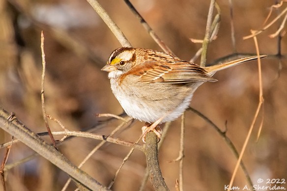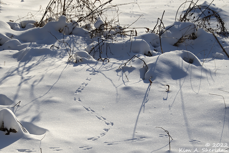 And the likely track maker. White-throated sparrows are common and very active on winter days. Lots of juncos were out and about, too.