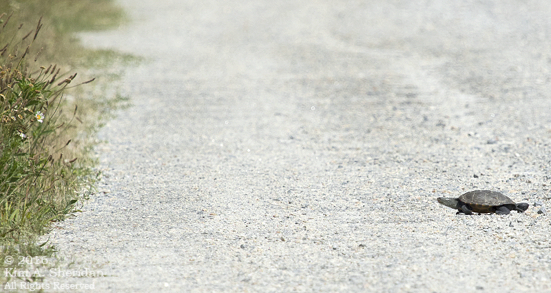 The White flag is up – it’s the final lap. A Diamondback Terrapin moseys toward the finish line.