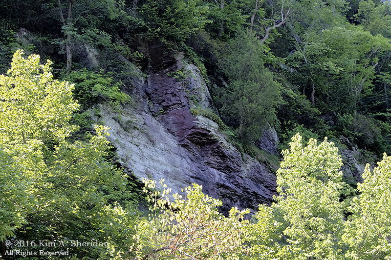 The cliffs south of us were dramatic. Even from a distance, the striations were obvious. It was also obvious that I’d made a miscalculation in suggesting the afternoon for this trek. I’d hoped it would be warmer. But the afternoon sun left the cliffs in deep shade, and none of my photos do them justice. Mistake #2.