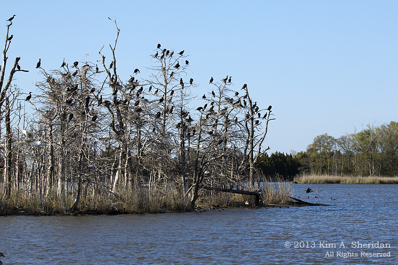 Our last port-of-call was Matt’s Landing Road at Heislerville WMA. There’s an island there covered with trees – and Cormorants. And Egrets. And Herons… Basically it’s a rookery, a place for birds to roost and nest. I was happy not to be too close – I can only imagine the smell.