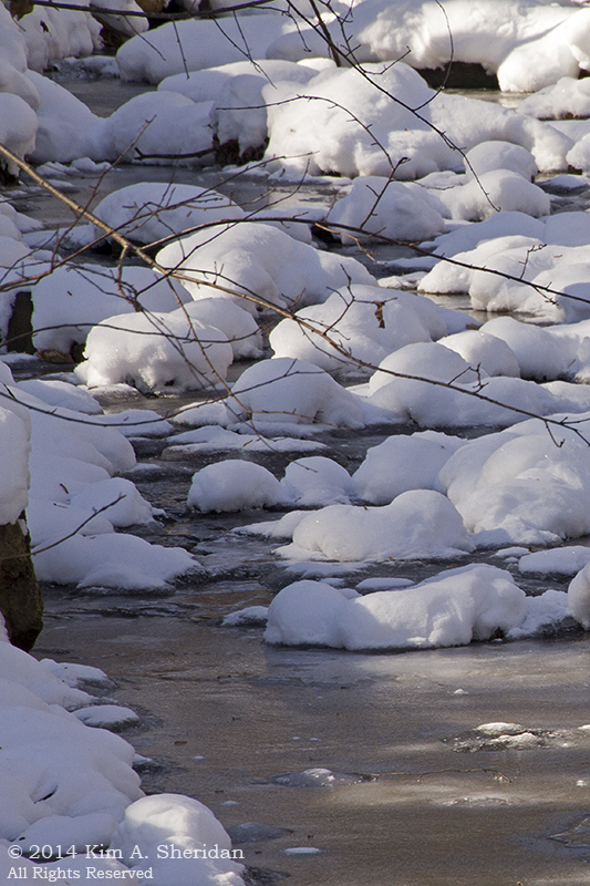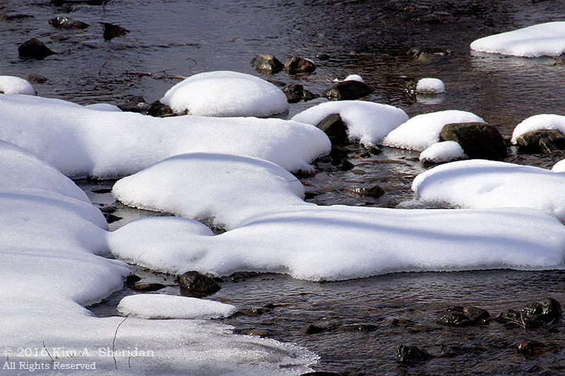Snow-covered rocks in the stream – Mother Nature’s cupcakes.