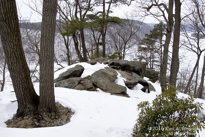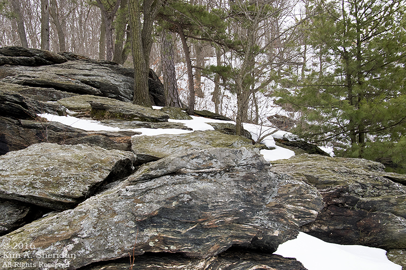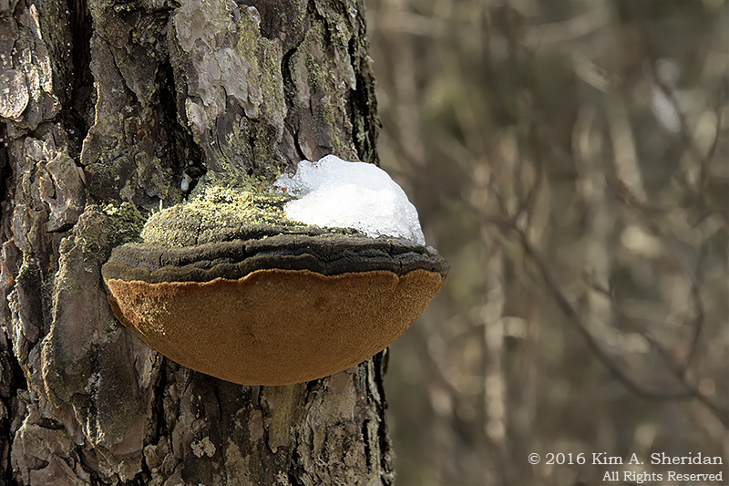 The perfect shelf for a miniature moss garden. Look very closely for the red moss sporophytes just at the left edge of the snow.