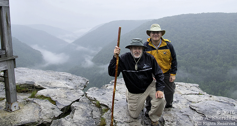 At last! The overlook. I was somehow expecting a close-up view of Seneca Rocks. Instead, the observation platform, perched on the cliff side just below the North Peak, offers a fine view of the valley below and the mountains beyond. Don, front and center.