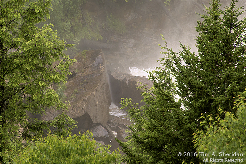 Upon hitting the bottom of the falls, water exploded back upwards to blanket the valley in mist. Everything nearby was soaked not from rain, but the river.