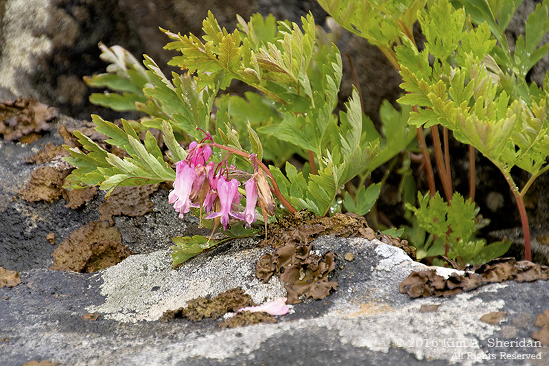 Yet tiny beauties thrive here. Wild Bleeding Heart and lichens.