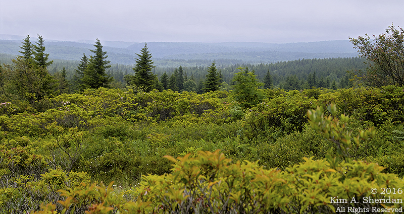 Plans change quickly. The southern end of the Sods is a dense cove forest along the Red Creek drainage. We’d seen plenty of forest, and were itching to see the heath barrens, bogs and sods we had heard about, and the stunted trees Don remembered from a previous visit. So our walking tour was abandoned in favor of driving north, deeper into the Sods.