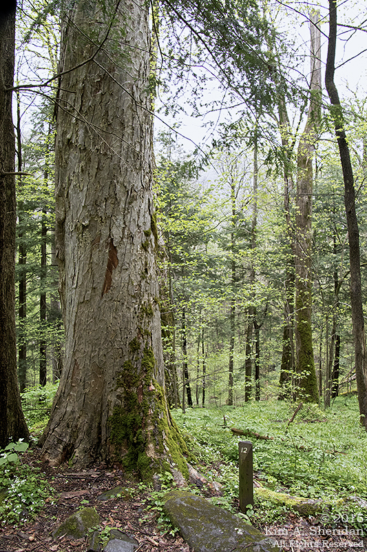 Don and I wanted to explore an old-growth forest, something neither of us had experienced before. We chose the Cove Hardwood Nature Trail, which winds through a cove hardwood forest in Sugarlands Valley.