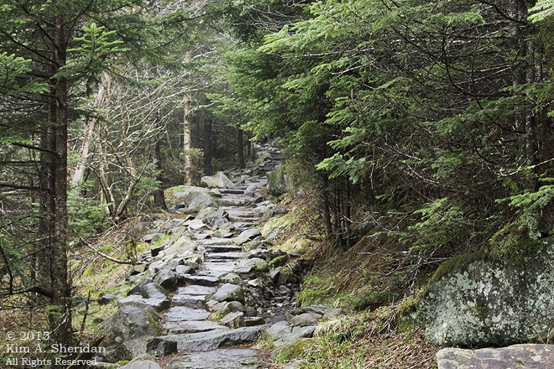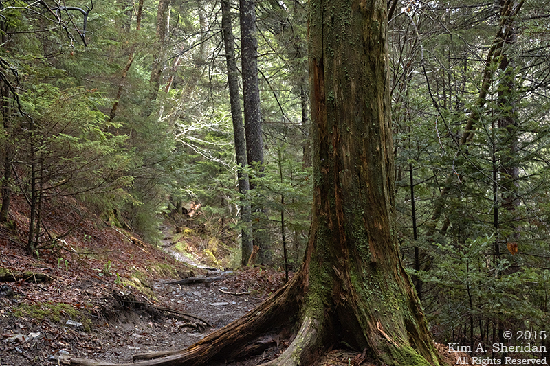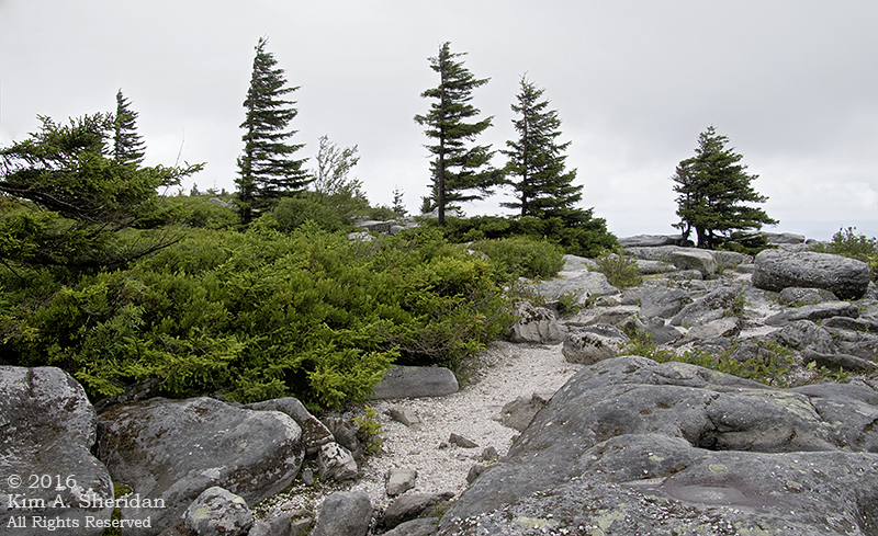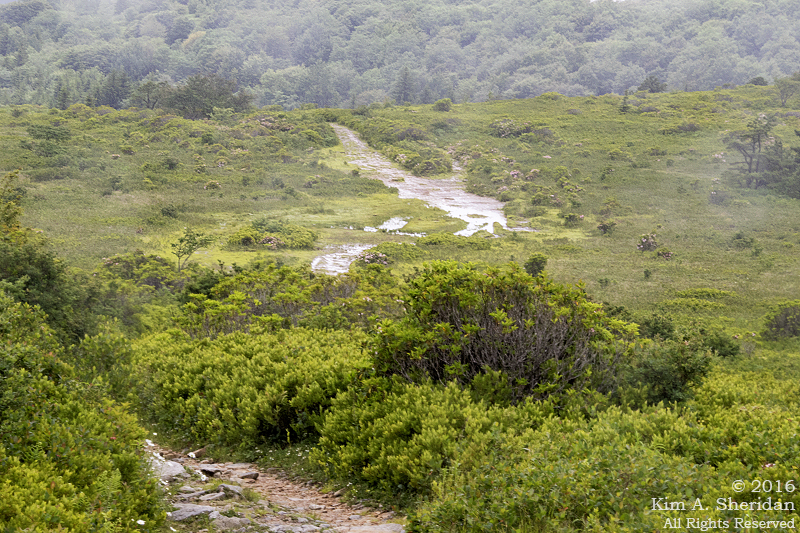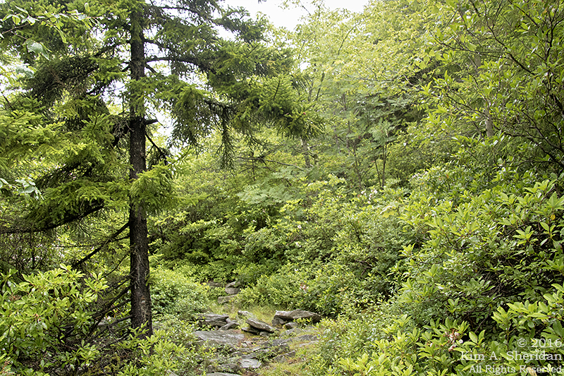 I fell in love with another unique forest ecosystem we encountered a number of times, the boreal spruce-fir forest. This type of forest is found in the North Woods of Maine and Canada. So what’s it doing in the Southern Appalachians? Ice, ice, baby. During the glacial periods, the trees and plants of the far north migrated here ahead of the glaciers. They found a favorable climate in the high altitudes of the Smokies and stayed after the glaciers retreated.