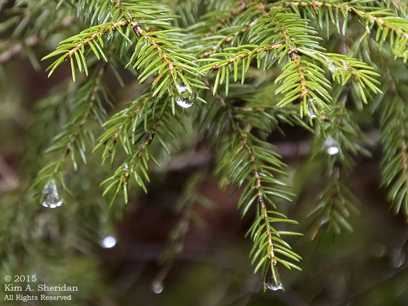 The loftiest slopes of Clingman’s Dome and other high peaks are draped in red spruce and Fraser firs. The day we trekked the Forney Ridge and Appalachian Trails, the woods were cloaked in a heavy mist. I felt we had entered a mysterious fairyland, softly decorated in deepest green and luscious auburn. Little dewdrops hung suspended from spruce needles. Mosses clung to both standing and fallen trees, while lichens coated the rocks.