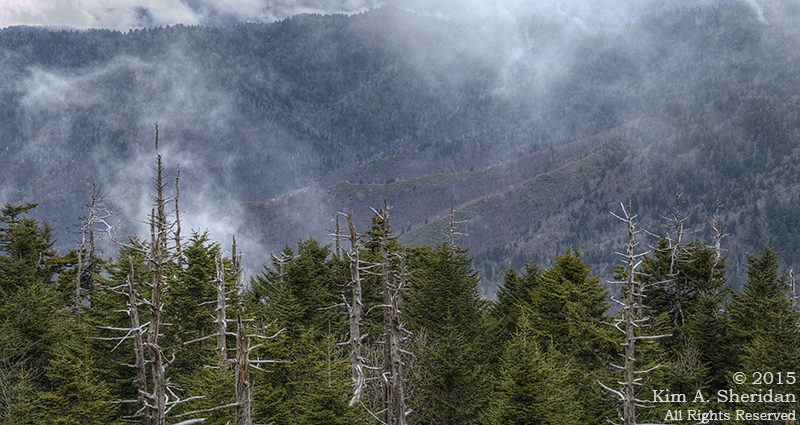 The forests are littered with the ghostly skeletons of dead Fraser firs. It is all too common to see numerous bare tree trunks standing amidst live firs.
