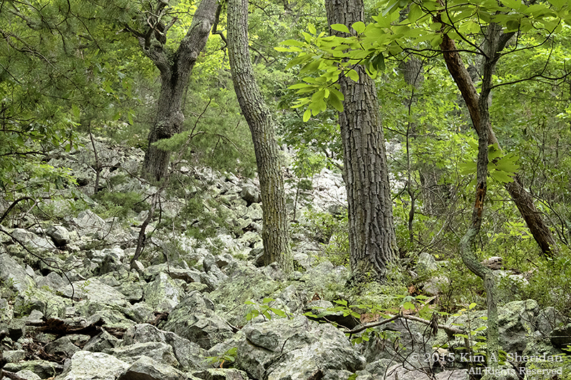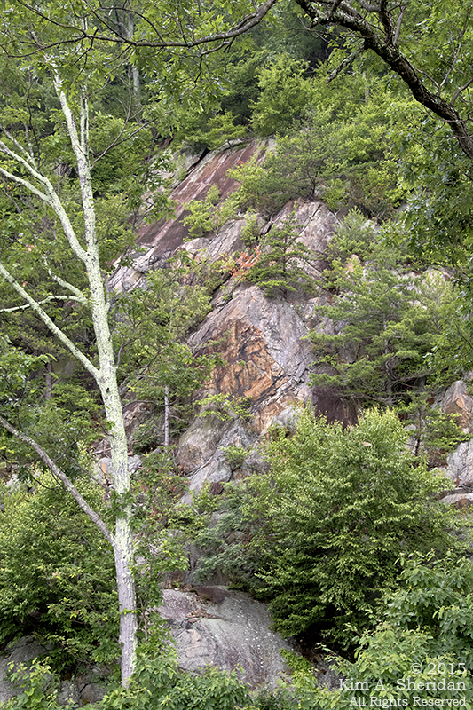 This cove is cool, sheltered and very moist, with tiny runs seeping from the slopes everywhere. Thirty species of trees are found here, including white basswood, yellow birch, tulip poplar, and hemlocks.