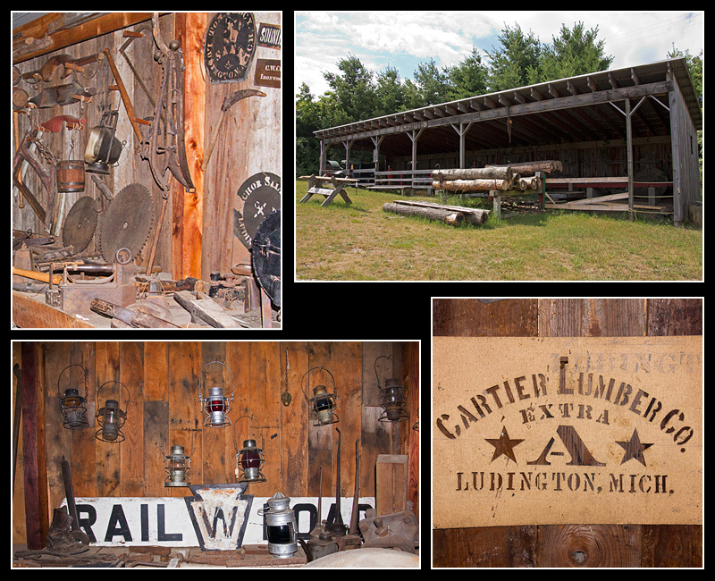With all those tall pine trees, it was inevitable that lumbering would become the predominate industry in the area. The first mill was built on Pere Marquette Lake in the late 1840s. Other mills followed -14 on Pere Marquette Lake alone – and by the 1870s, business was booming. The sawmill shed pictured holds a 48’ portable sawmill that would have been moved from camp to camp. The railroad arrived around 1875. Competition was fierce among the lumber barons, but by 1910, the lumber industry was collapsing, as the timber supply had become completely depleted.