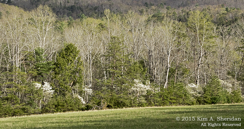 A “cove”, by the way, is Smoky Mountain parlance for a flat valley between mountain ridges. At Cades Cove, the overlying rock has eroded to expose a valley of limestone. Meadow grasses and plants thrive on limestone soil.