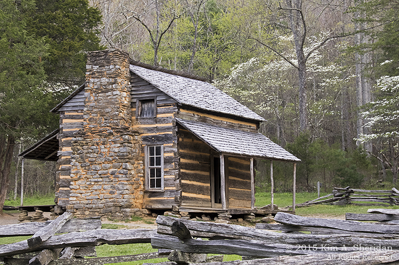 Since the establishment of Great Smoky Mountains National Park in 1934, the area has been maintained as an historic district. Some of the original buildings are still in place, and we stopped to explore them as we drove the loop road. The cabin above was the home of John Oliver, the one of the first settlers of Cades Cove. It’s a simple one-room log cabin, with doors on three sides and a loft above.