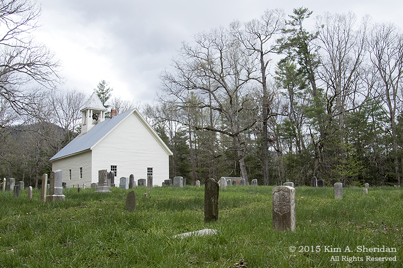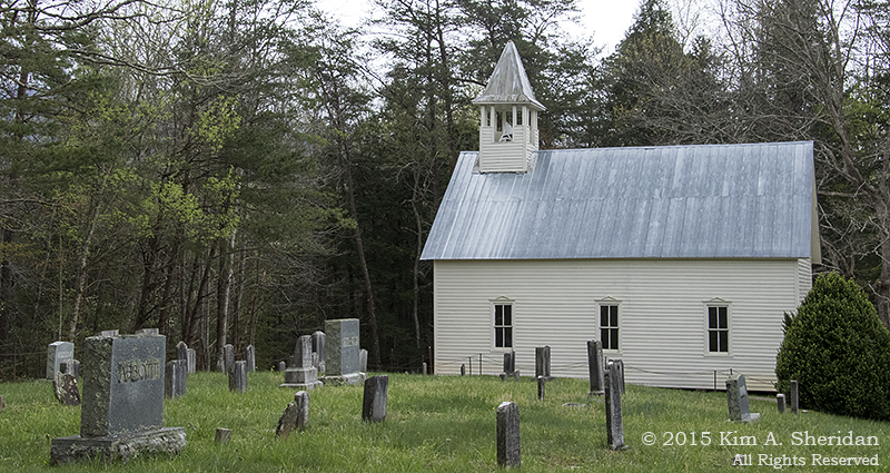 All three churches are spare white frame buildings with a bell tower on top. Inside are rows of pews, and a pulpit. Outside each church is a graveyard, which gave Don and me a change to indulge our interest reading old tombstones. Here Olivers, Tiptons, Shieldses and Cables abound. Many young children were buried in these graves, some too young to even have names. Life could be harsh in Cades Cove.