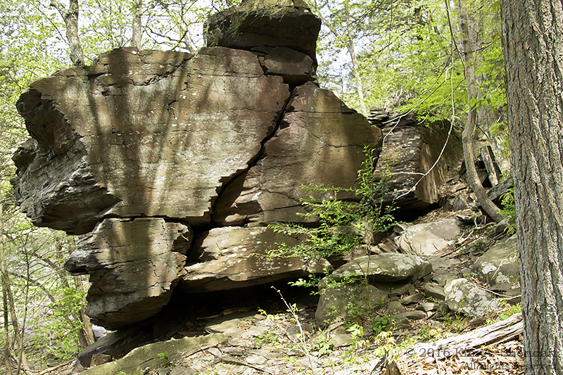 From a side trail, we got our first glimpse of the gold mine. This outcropping hides a small cave near its base that once was home to a mining operation, way back when in the 1760s.