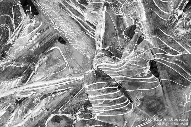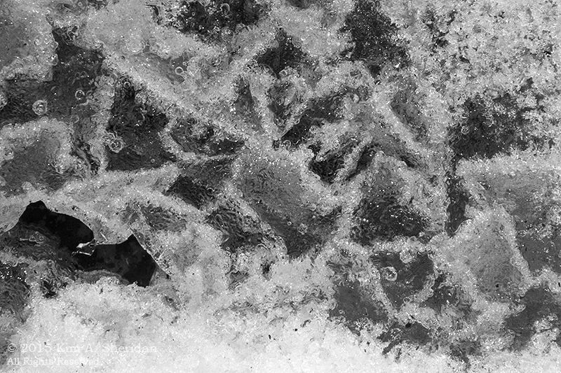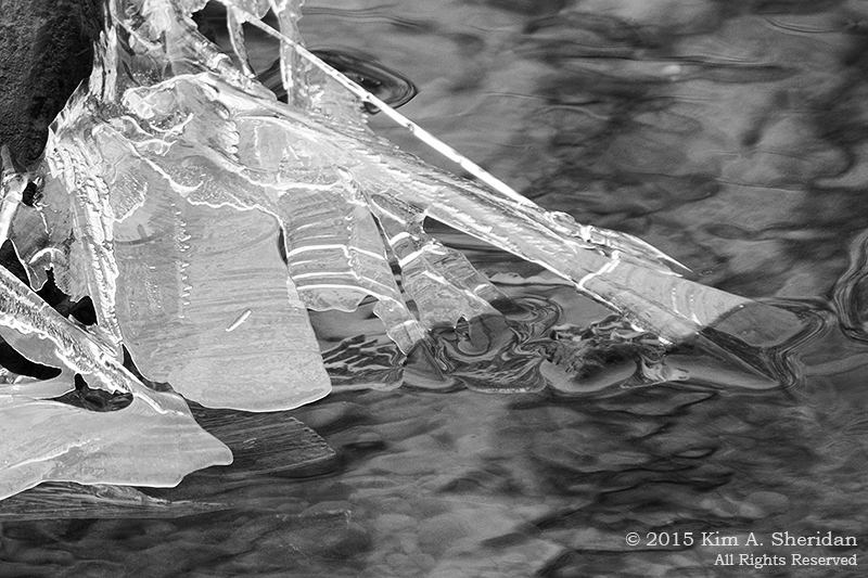 Intricate patterns etch cold surfaces on Crum Creek, below.