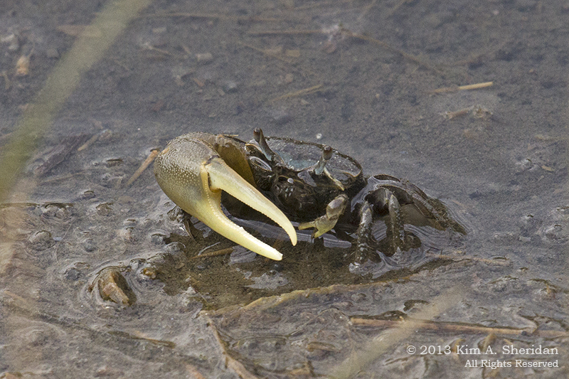 OC Corsons Fiddler Crabs_4533aIt’s a big world out there for a little crab. They have a lot of predators. Threats can come from larger crabs like the marsh crab, diamondback terrapins, and even mink and raccoons. Then there are the dangerous birds, like Great and Snowy Egrets, Great Blue Herons, terns, and gulls.