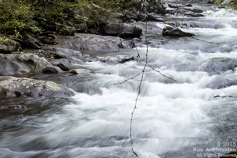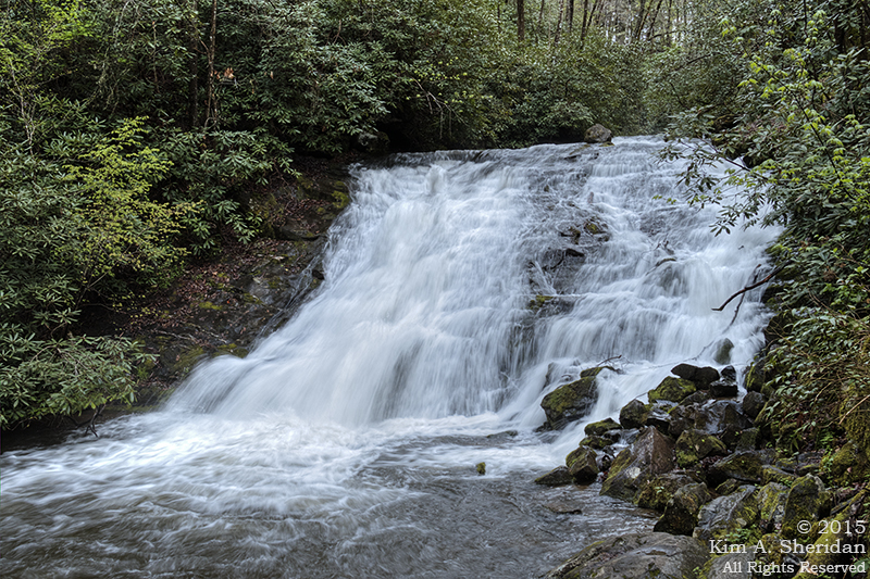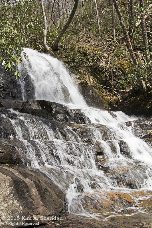 By the way, all of these photos were taken, not on our first night in the park, but the morning of July Fourth, two days later, while my traveling companions were still in dreamland. Tee-hee – I had the falls to myself. Heaven!
